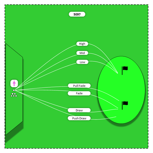 Pick a flag/target suitable for long irons (4,3,2). Hit one bucket of ~50 balls using long irons only. Goal is to consecutively hit one type of shot and then its opposite – hit opposites 5 times in total to complete the challenge. For example, hit 1 fade and 1 draw, five times. Then hit 1 high shot and 1 low shot, five times. Then pull/fade and push/draw, five times. Hit opposites to the same flag. Switch between long irons throughout the exercise.