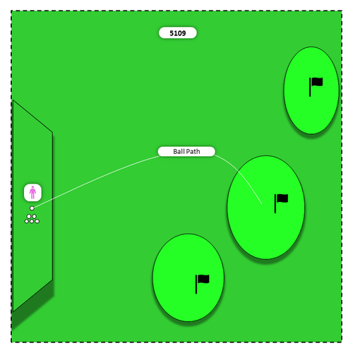Approach #2 – until successful (easier). Pick flags/targets (one or more) suitable for wedges (LW,SW,GW,PW). Hit one bucket of ~50 balls using wedges only. Goal is to keep hitting the ball(s) to the same flag with the same club – until satisfied with the shot. Then hit to the same or different target, using a different club. Count how many times it takes to hit a successful shot.