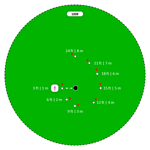 Make 8 putts in a row to complete the spiral. If miss a putt, fall back one tee.